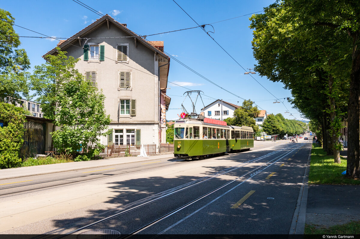 Am 12.06.2022 ist SVB Be 4/4 107 + B 337 unterwegs Richtung Holenacker und konnte hier bei Bern, Steigerhubel aufgenommen werden
