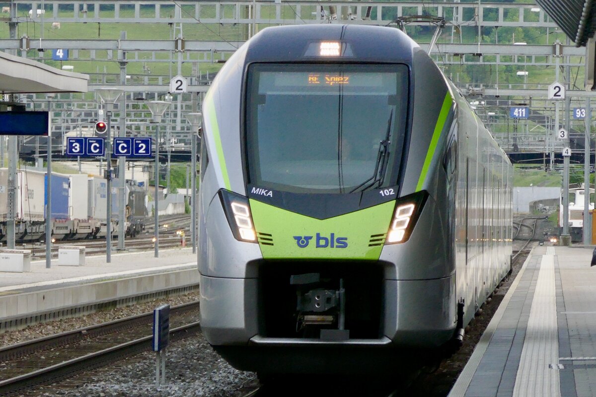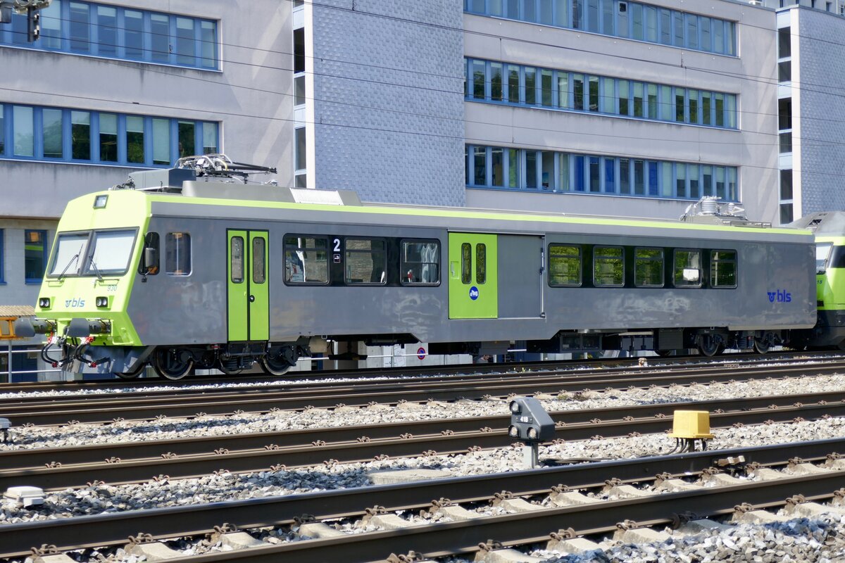 Heckansicht des ABt 940 der BLS am 2.6.23 bei Interlaken Ost abgestellt.