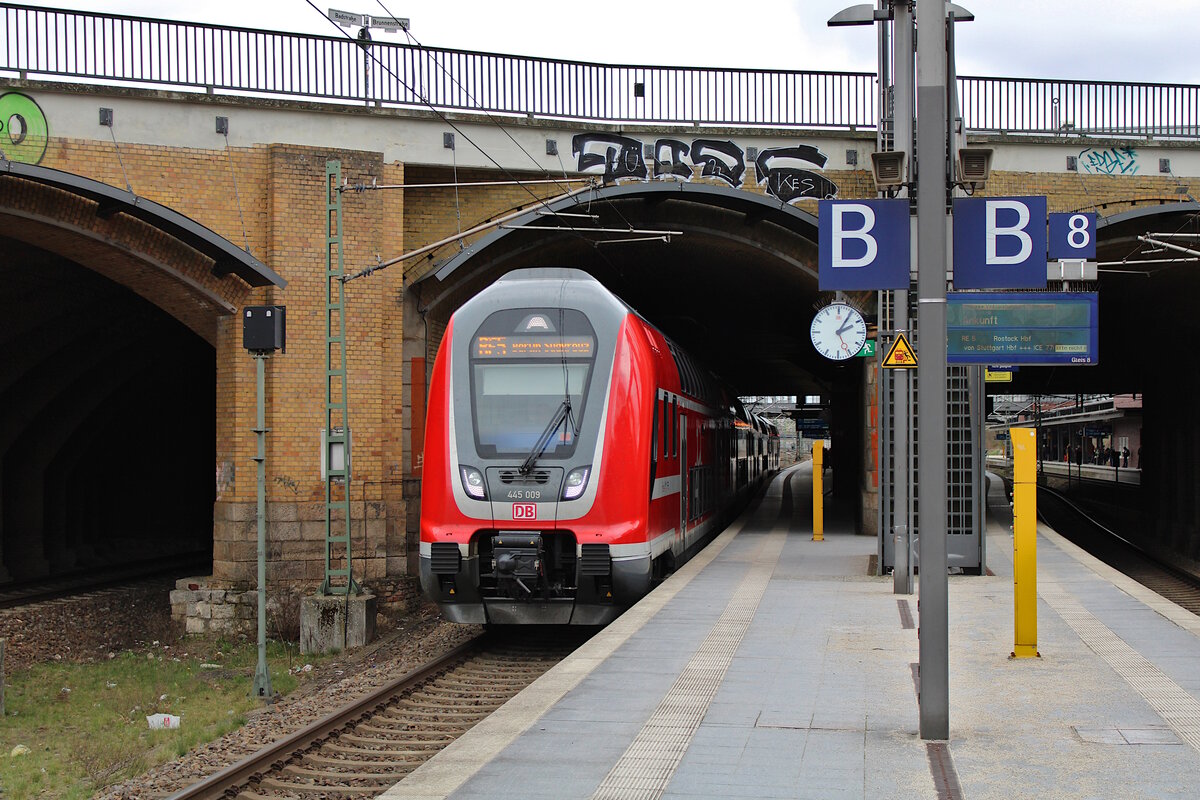 DB 445 009 verlässt Berlin Gesundbrunnen zur Fahrt als RE5 nach Berlin Südkreuz. (03.04.2023)