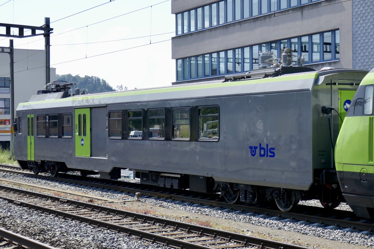 Der neu umgebaute Steuerwagen 930 für die Autozüge der BLS am 31.5.23 beim Bahnhof Gümligen abgestellt.