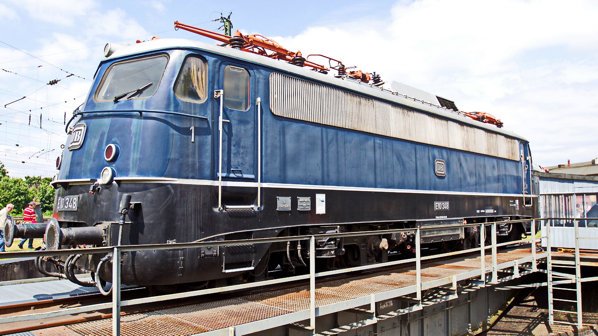 Im Museum Koblenz steht E 10 348 an diesem Sonntag den 20. Mai 2023 auf der Drehscheibe zur Ansicht der linken Seite bereit.