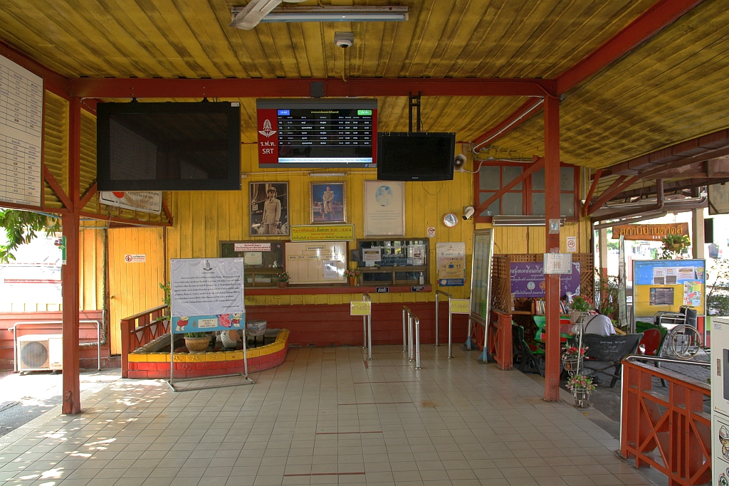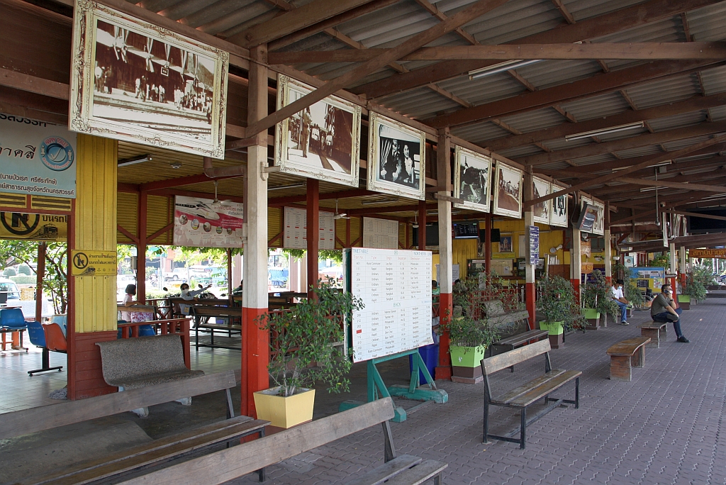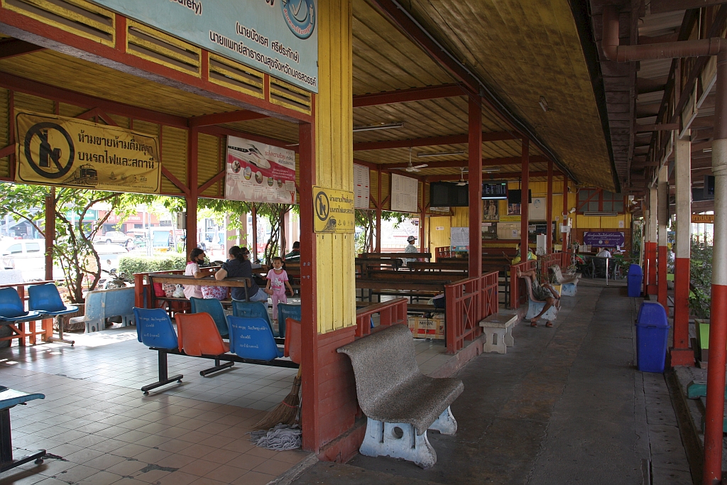 Vom derzeitigem Modernisierungs-, Umbau- und Neubauprogramm der SRT ist auch die Northern Line betroffen. - In der Ban Takhli Station entsteht ca. 400 Meter südlich des jetzigem ein neues und größeres Aufnahmegebäude. -  Das Bild vom 29.März 2023 zeigt das jetzige, bald Geschichte sein werdende Aufnahmegebäude vom Vorplatz aus gesehen.