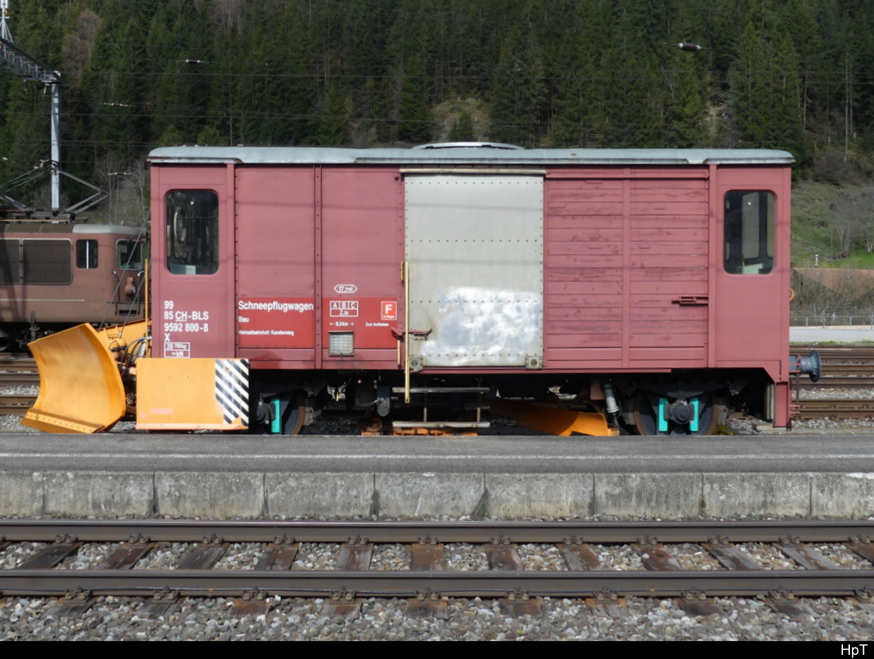 BLS - Dienstwagen X 99 85 95 92 800-8 abgestellt im Bhf. Kandersteg am 30.04.2023