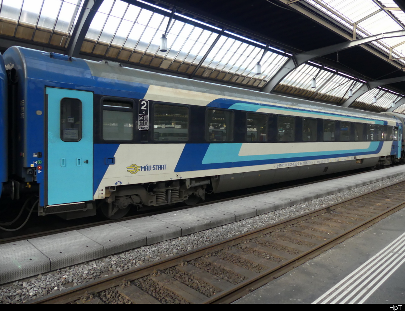 MAV - Personenwagen 2 Kl. Bcmz 61 55 50-91 107-2 im HB Zürich am 07.05.2023