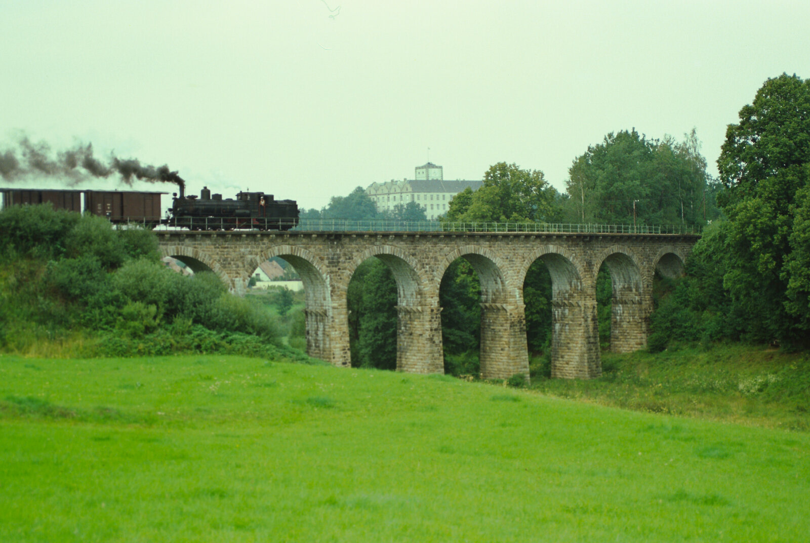 Auf dem Weg nach Kautenbach verläßt hier ET 17 Michelau am 23.5.2023 um 10.25 Uhr.