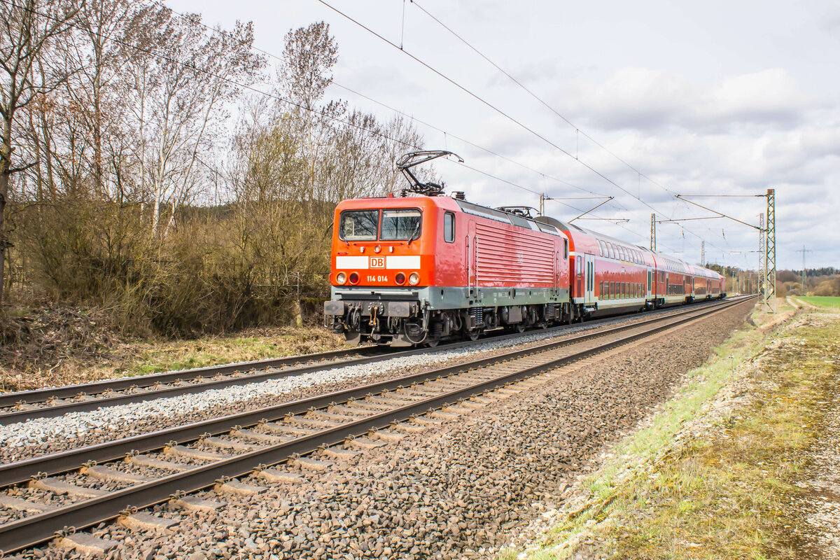 114 014-4 u.114 037-5 sind in Richtung Frankfurt/Main bei Kerzell am 22.03.2023