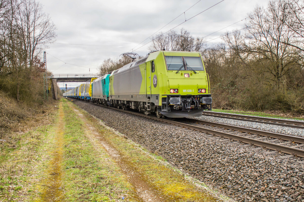 185 168-1 mit eienm gemischten Güterzug am 22.03.2023 bei Kerzell