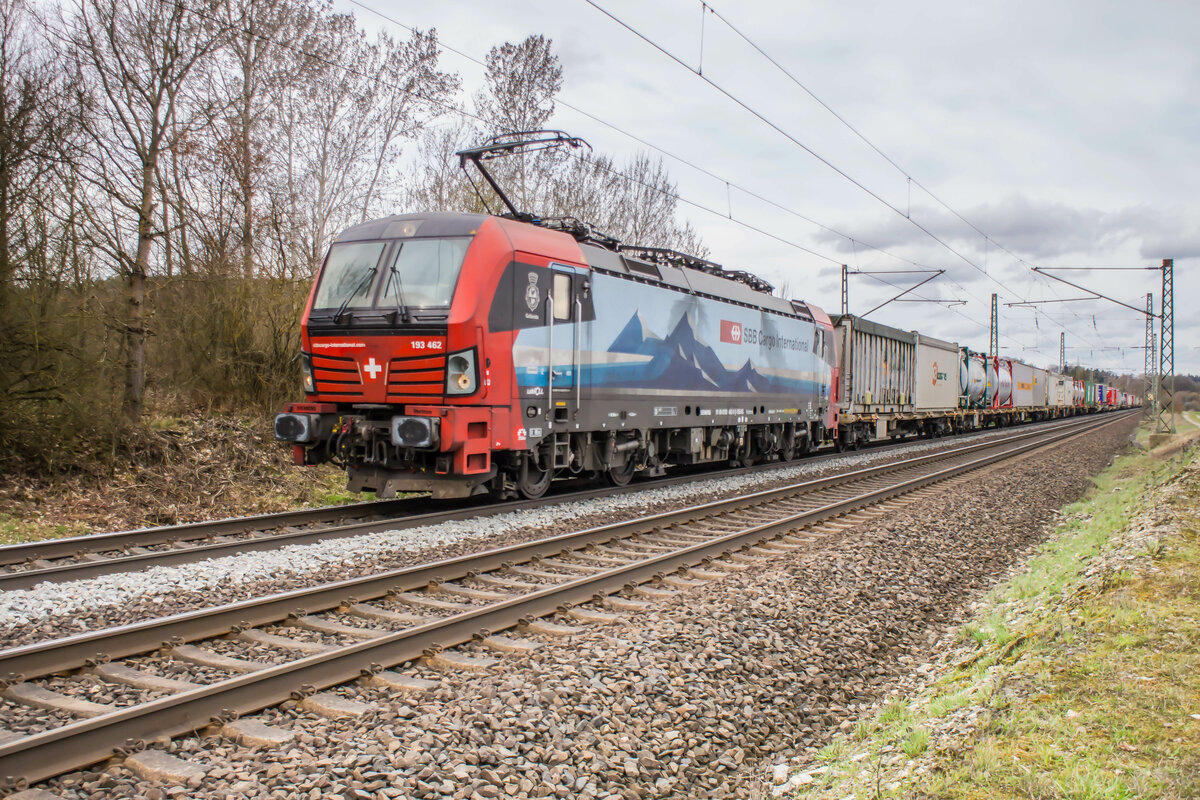 193 462-9 ist am 22.03.2023mit einem Containerzug bei Kerzell unterwegs.