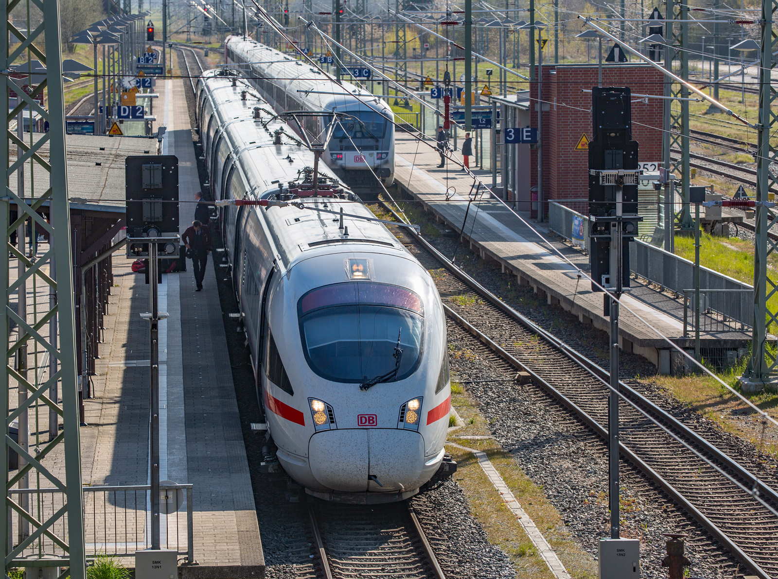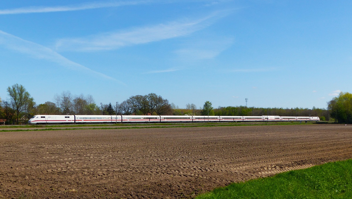 Ein ICE1 fährt bei Braunschweig Timmerlah in Richtung Groß Gleidingen.