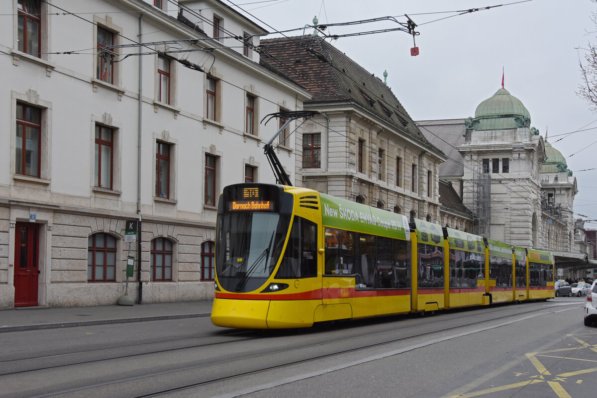 Be 4/6 Flexity 6009, auf der Linie 15, fährt am 11.04.2023 zur Haltestelle Claraplatz.