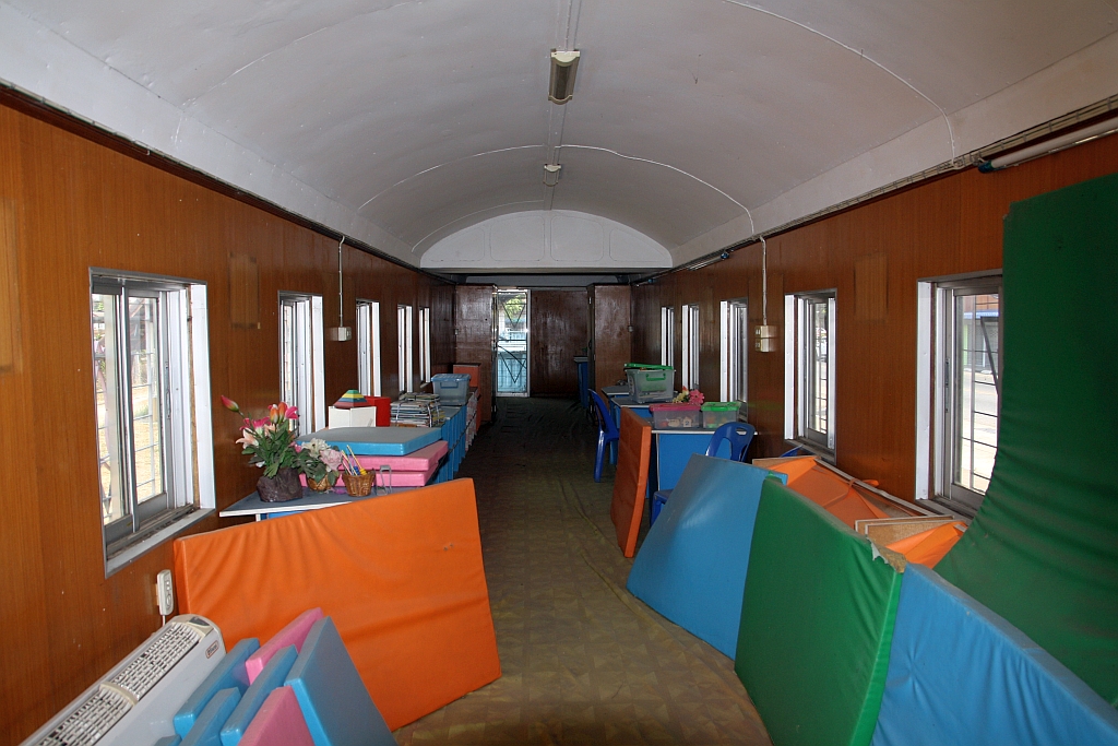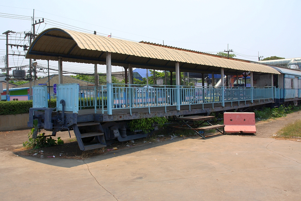 Südlich, gleich neben der alten Uttaridt Station steht ein Unterrichtszug der aus 4 von Cravens gebauten Altbau-Reisezugwagen besteht. - Beim ersten Wagen, welcher als "The Learning Resources Carriage for the King" bezeichnet ist, handelt es sich um den ehemaligen บสพ. 17 (บสพ. =BTV./Bogie Third Class & Van, Hersteller: Cravens Railway Carriage & Wagon Company/Sheffield, Bauj. 192?). Bild vom 26.März 2023.