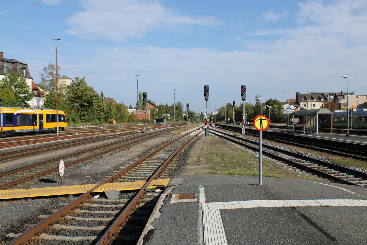 Blick vom Bahnsteig 5 in Weiden (Oberpf) am 12.11.2023 in Richtung Bayreuth und Hof.