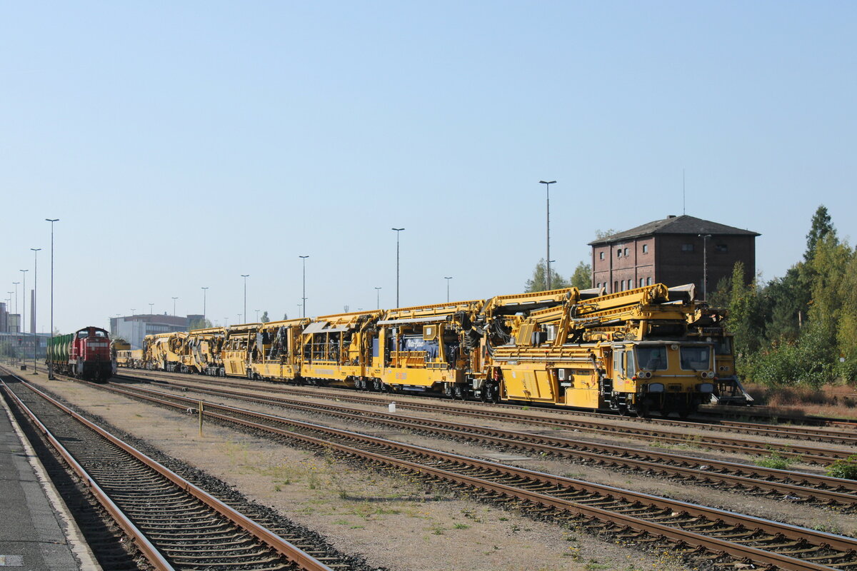 Die Eurailpool Plasser & Theurer Recycling Schotterwaschanlage  Water-Cleaner  stand am 03.10.2023 im Bahnhof Weiden (Oberpf).