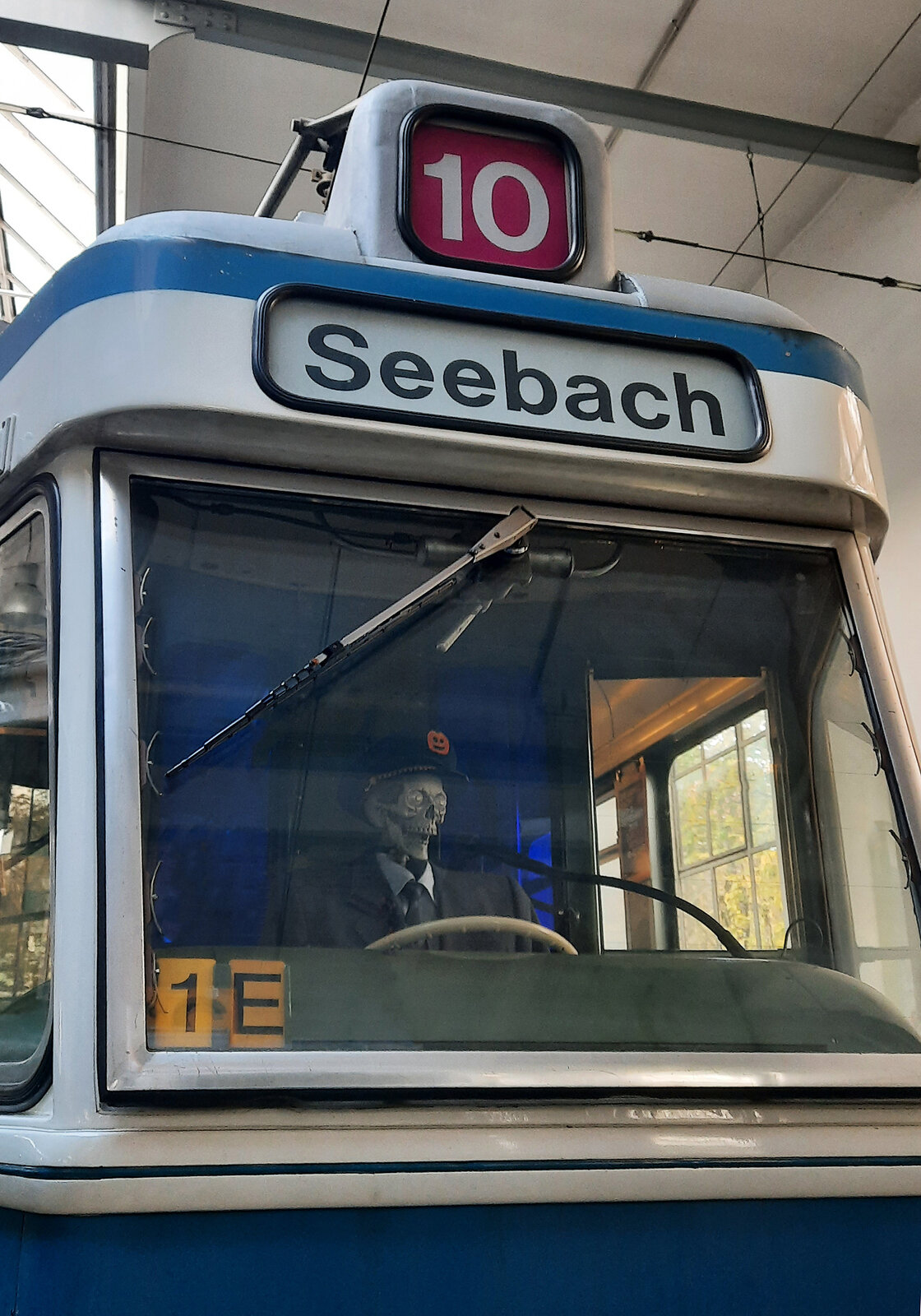 dahinter ein TW der Straßenbahn, die vom Zentrum direkt bis vor das Museum fährt.