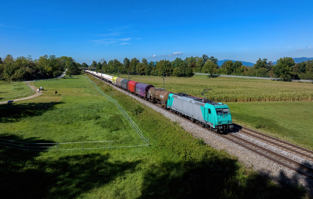 185 615 mit einem Güterzug am 16.09.2023 bei Schwarzwöhr.