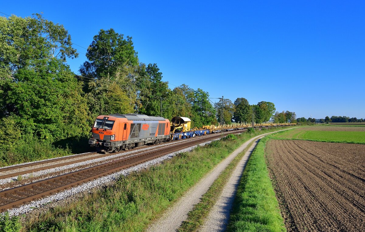 247 903 mit einem Bauzug am 21.09.2023 bei Langenisarhofen.