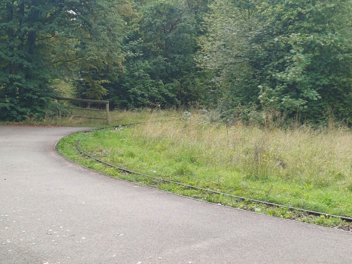 Das Strecken- und ein ein kurzes Stumpfgleis der Tiergartenbahn Nürnberg, am 16.08.2023 in der Nähe des Betriebshofes.