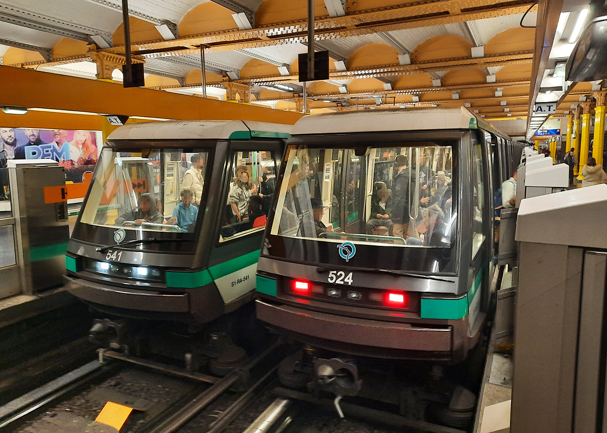 Triebfahrzeugführer mit Kapuze? Nein, die Linie 1 der Pariser Metro wird ohne Lokführer betrieben. Paris, 20.10.2023