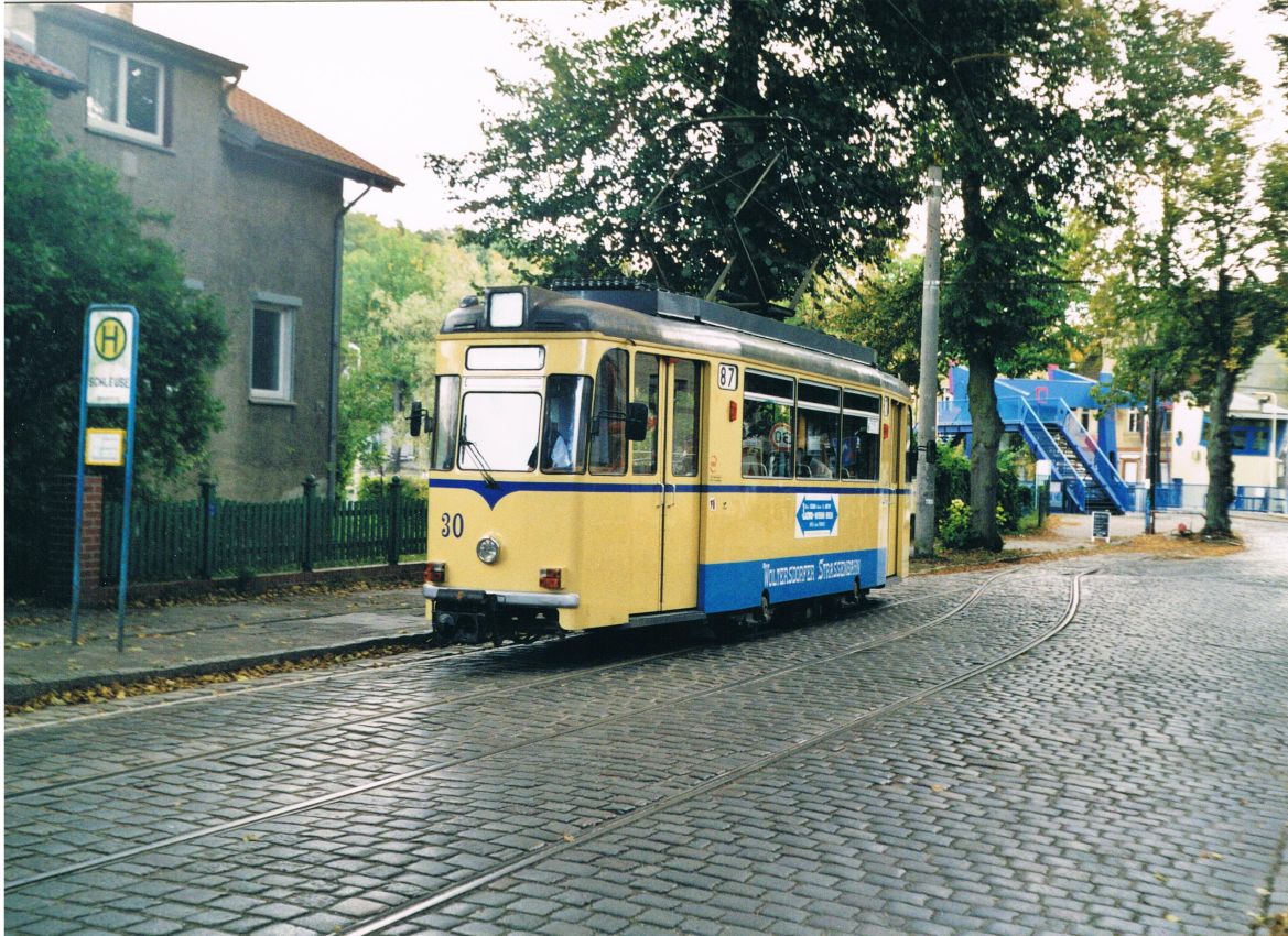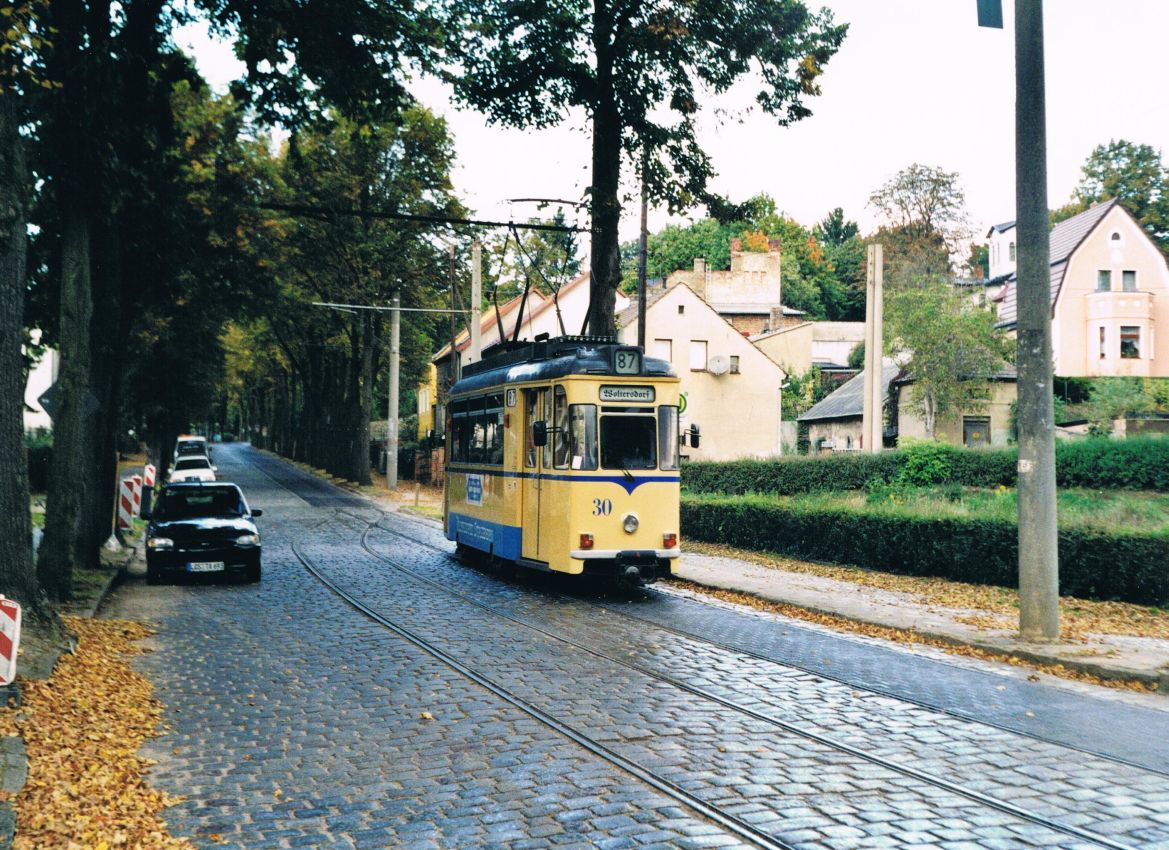 Straßenbahn Schöneiche-Rüdersdorf__Feierabend-Stimmung mit Tw 77 [T57; VEB Gotha 1957: 2003 >Istanbul].__29-10-1992