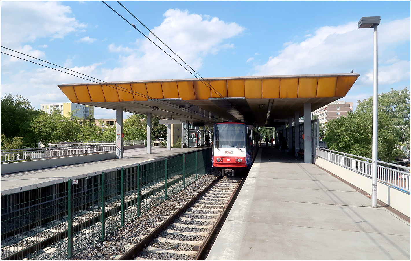 Die meisten Haltestellen entlang des Westfalendammes sind noch nicht mit Hochbahnsteigen ausgerüstet. Dies sollte im Zusammenhang mit dem Ausbau der Bundesstraße geschehen. Wenn ich es richtig verstanden habe, verzögert sich dieser Ausbau und der stadtbahngerechte Ausbau der Haltestellen soll unabhängig davon geschehen.