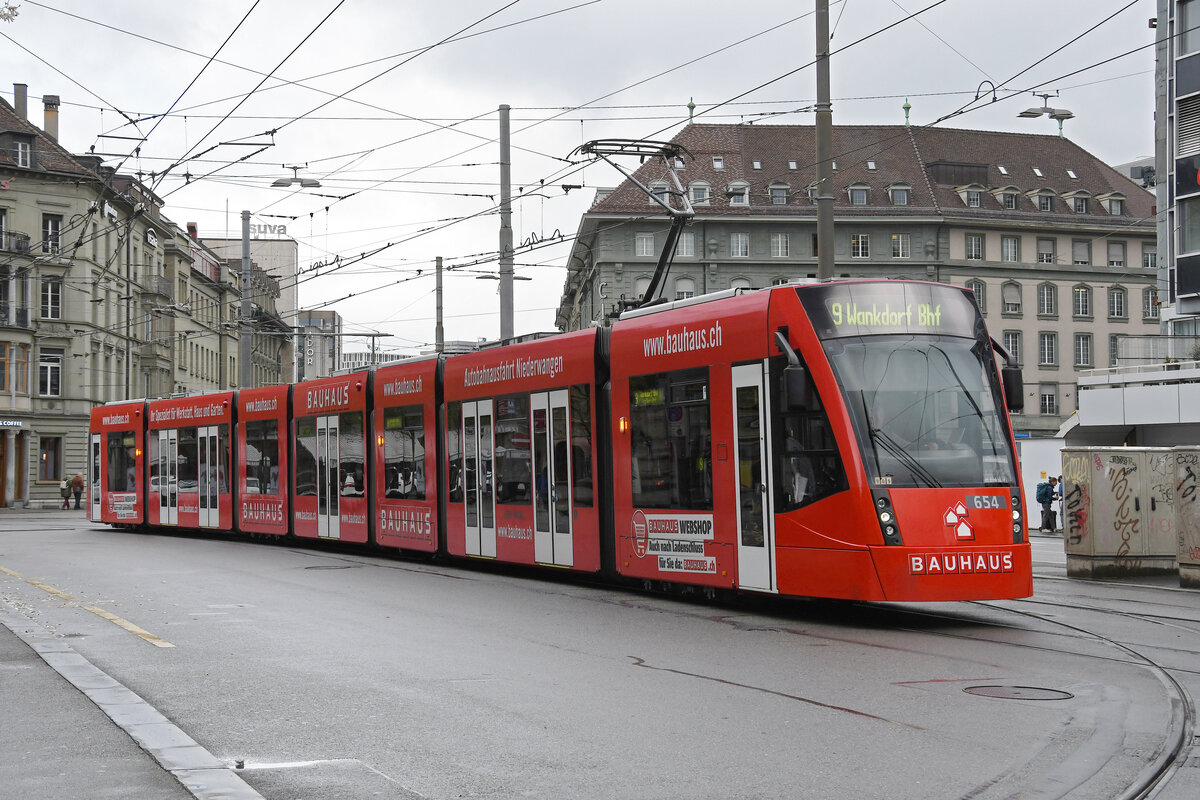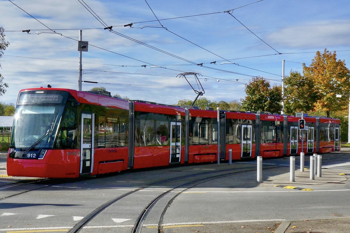 Stadler Tramlink Be 6/8 912 als Shuttle am 28.10.23 vor der Einfahrt zum Depot Bolligenstrasse