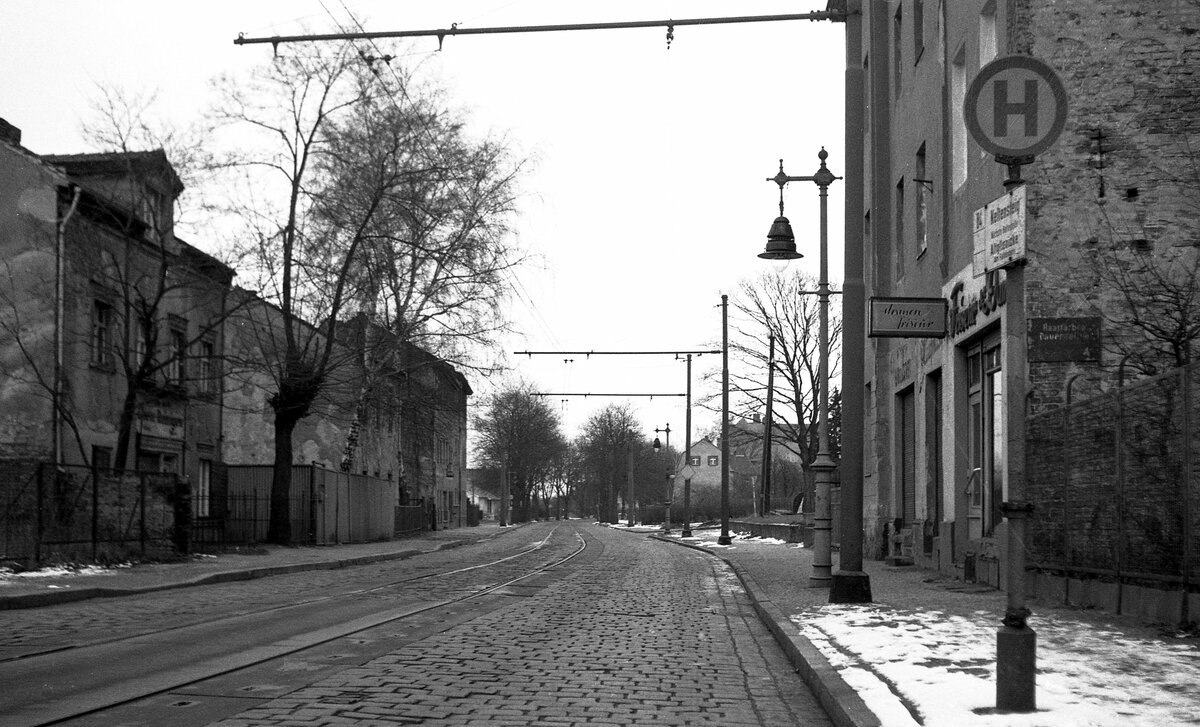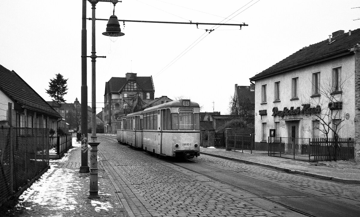 BVB Ost-Berlin__Zug der Linie 84 in Altglienicke.__28-01-1978