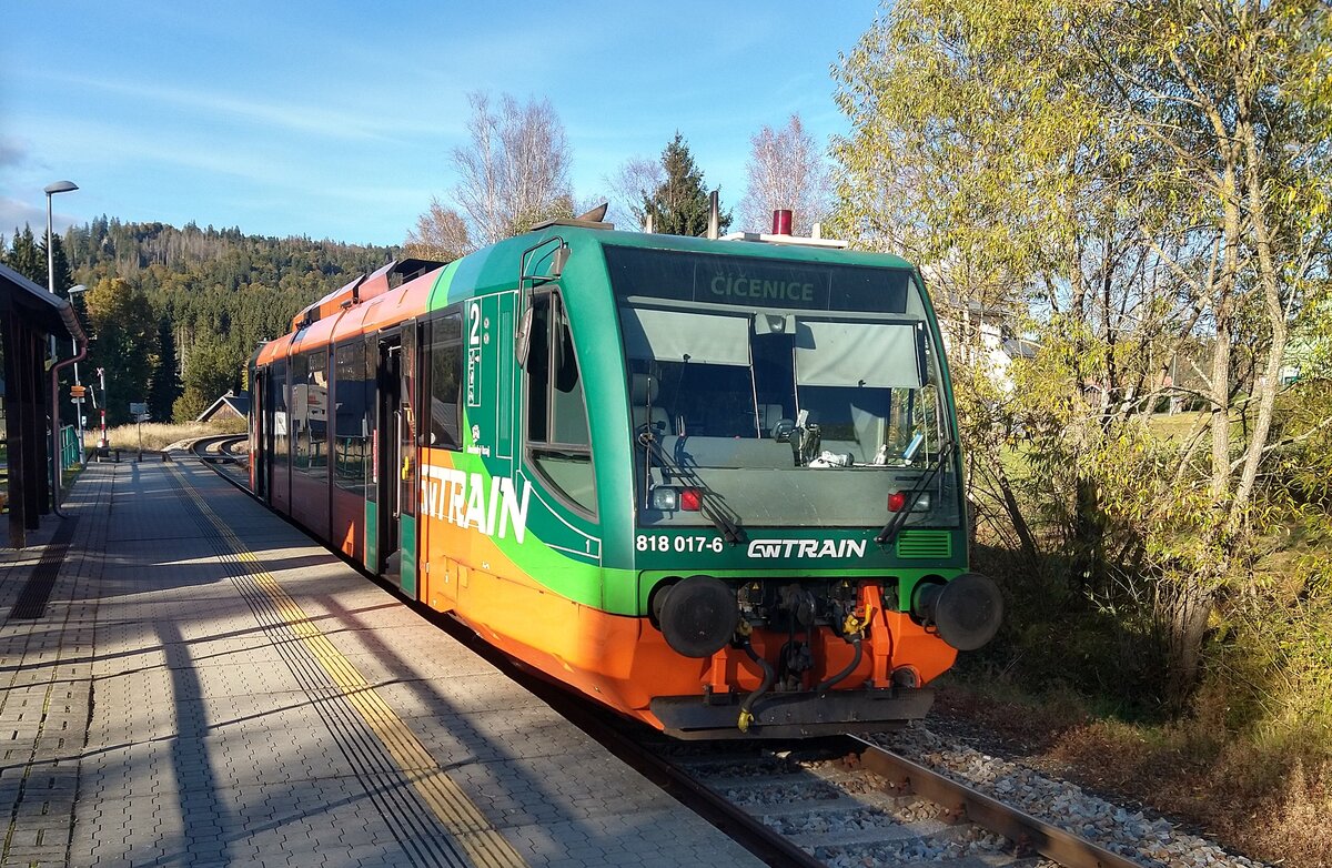 Ein TW der Baureihe 518 des Unternehmens GW Train Regio präsentiert sich hier in Stožec (deutsch Tusset) 16.10.2023 17:22 Uhr.