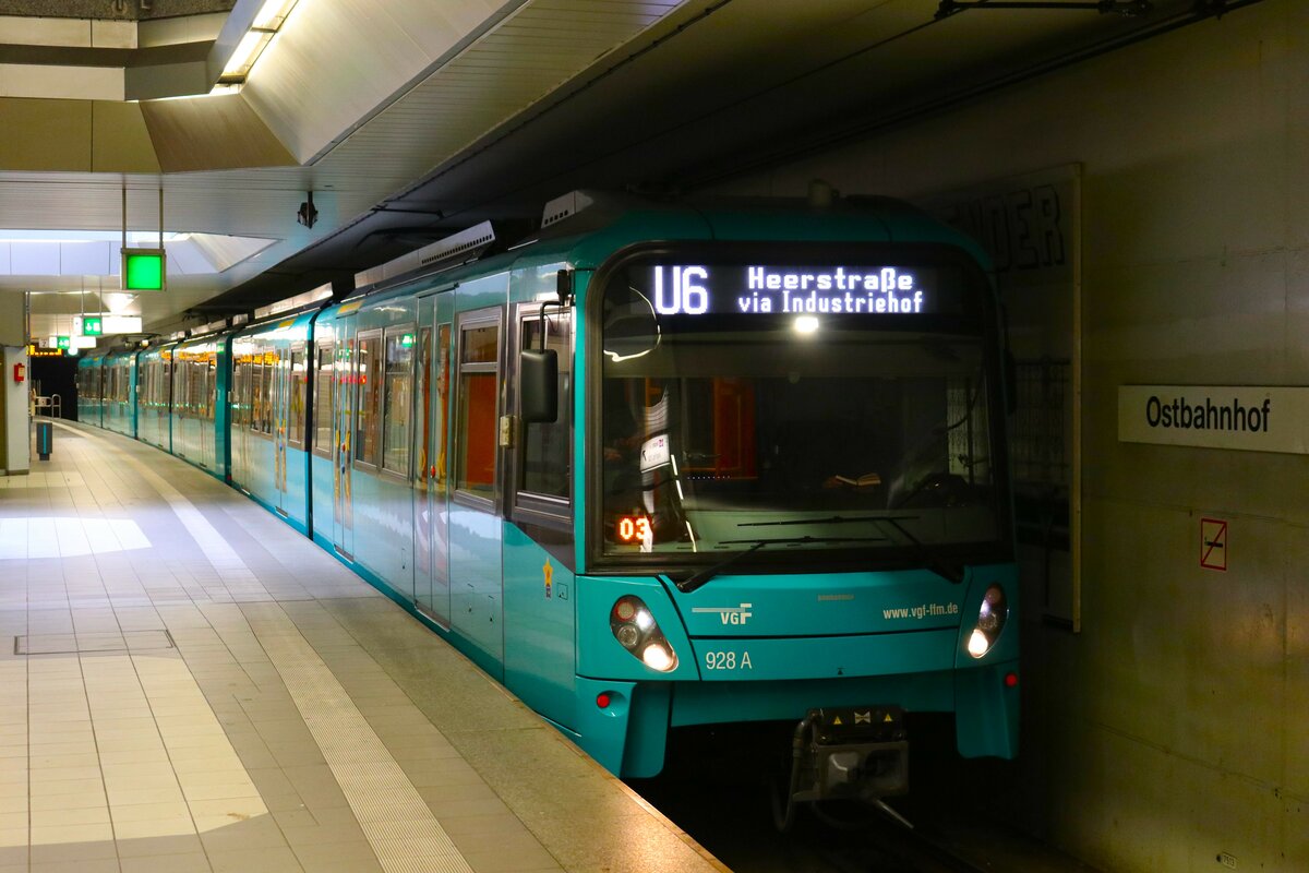 VGF Bombardier Flexity swift U5-75 Wagen 928 am 27.10.23 in Frankfurt am Main Ostbahnhof