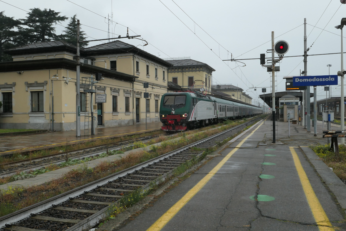 Was wäre ein Ausflug nach Brig ohne die Fahrt durch den Simplontunnel nach Domodossola? Auf Gleis 1 steht die E464 239 der Trenord mit einem "Regionale" bereit zur Fahrt nach Milano Porta Garibaldi. Das regnerische, kühle Wetter in Piemont hat mich ein wenig erstaunt. Domodossola, Donnerstag, 19. Oktober 2023
