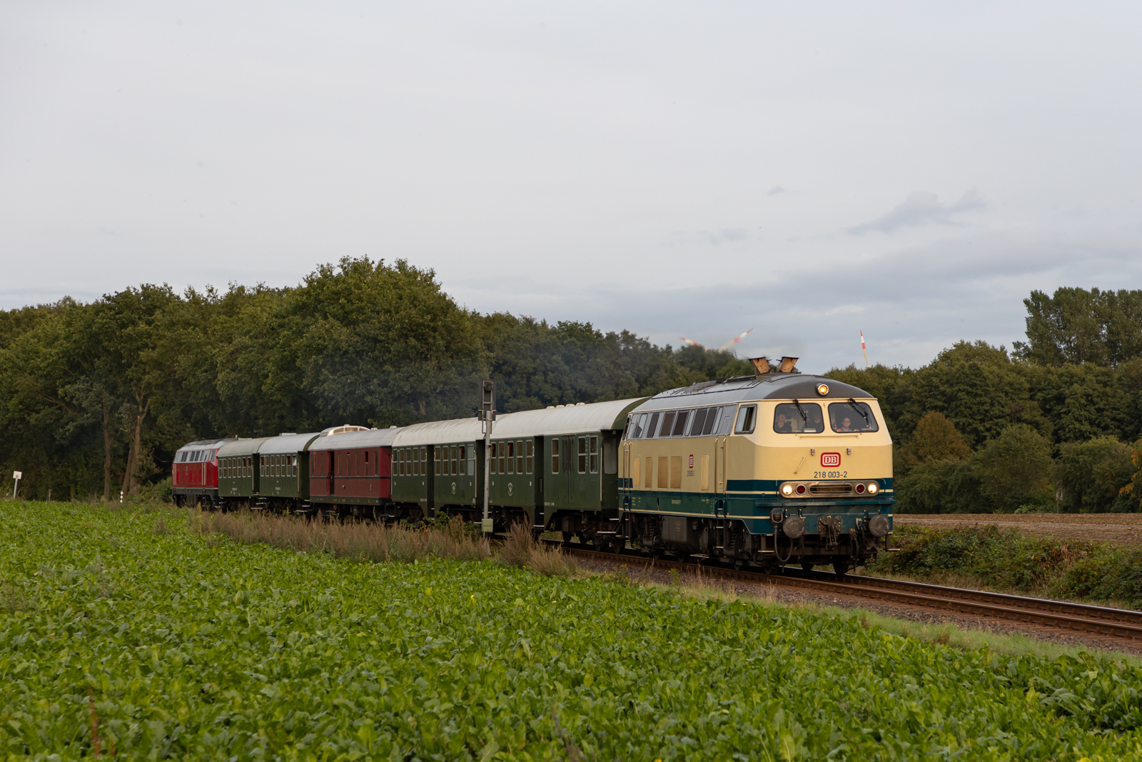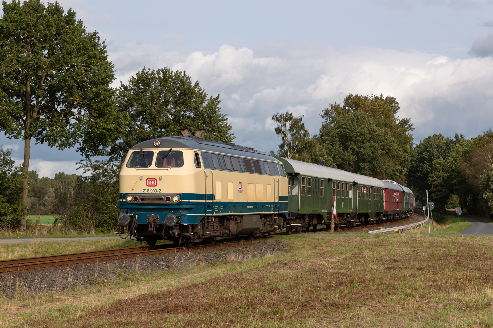 Bahnofsfest 125 Jahre Bremervörde - Stade 30.9.2023. 218 003 bei Hesedorf Richtung Bremervörde