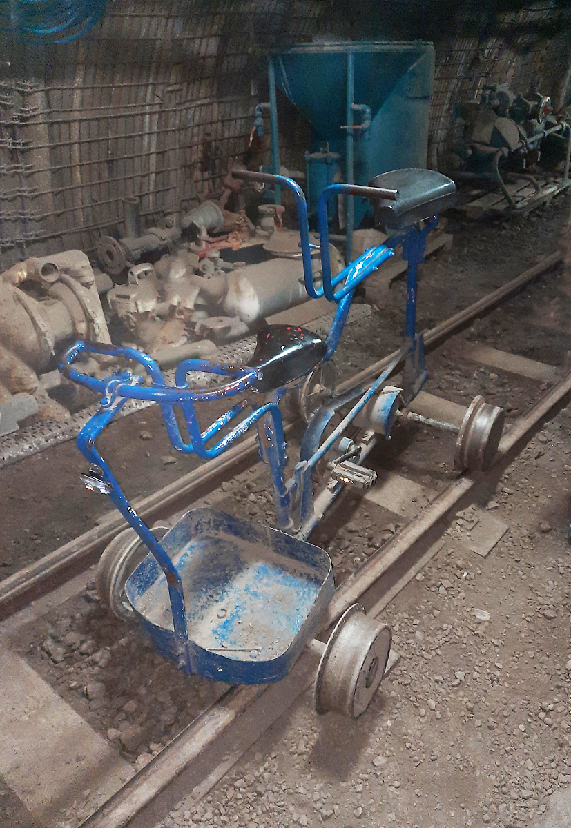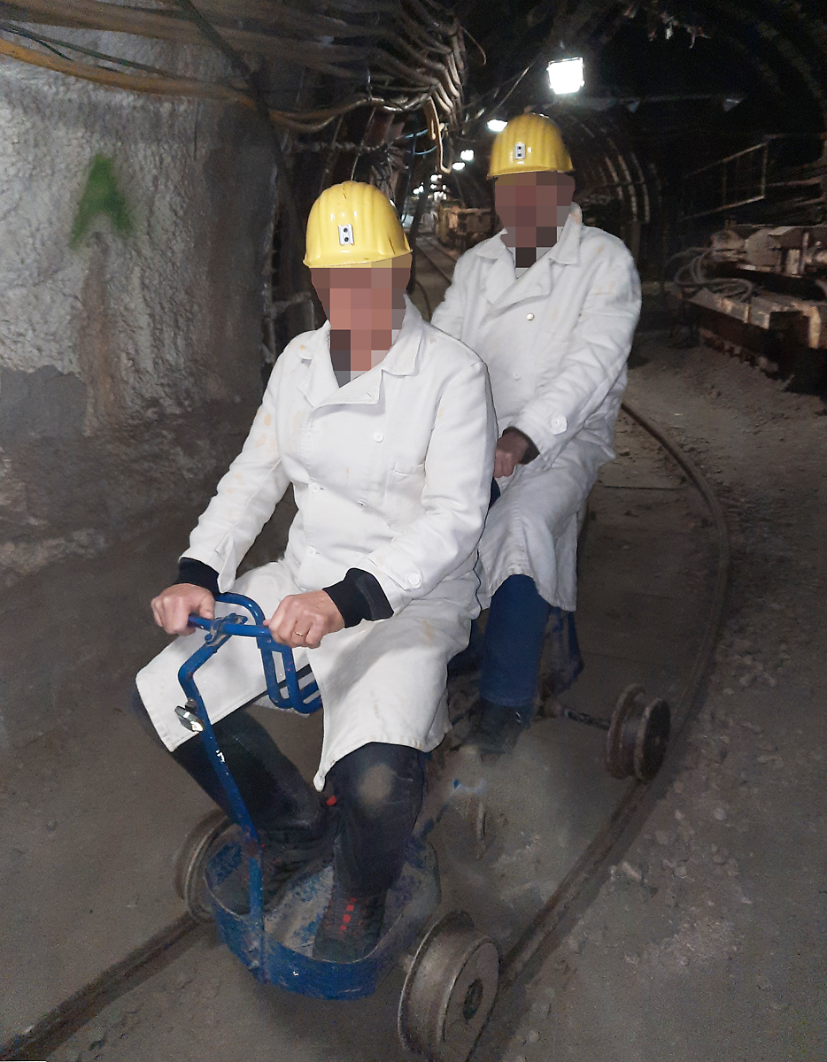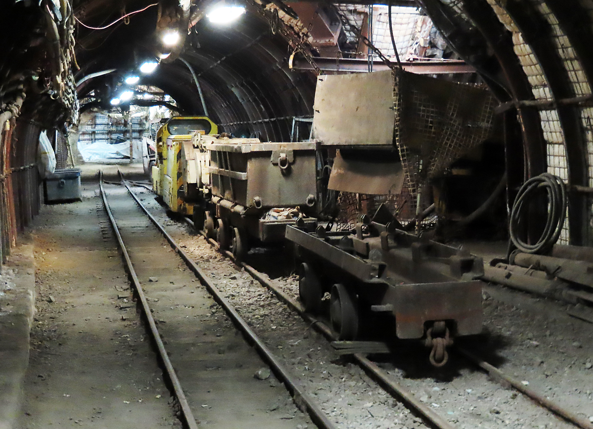 So können die Teilnehmer einer Führung ein paar Meter durch das Bergwerk fahren (vorne der Besitzer der Fotokamera, mit welcher dieses Foto gemacht wurde). Recklinghausen e.V., 3.3.2023