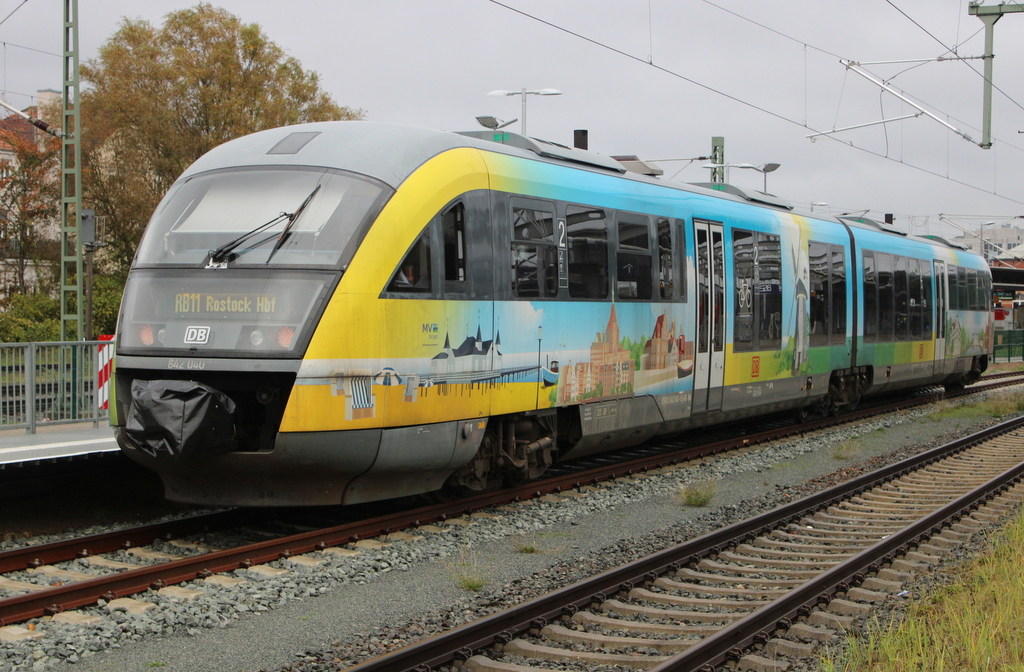 MV Design 642 040 stand am Mittag des 31.10.2023 als RB11 im Rostocker Hbf.