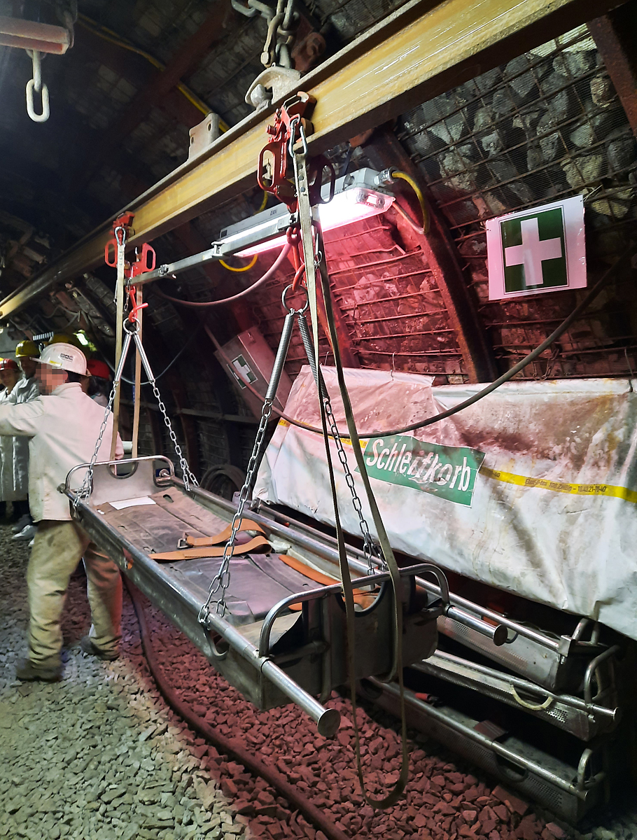 Schleifkorb zur Personenrettung bei der Stollenbahn im Trainingsbergwerk Recklinghausen e.V. Recklinghausen, 3.3.2023