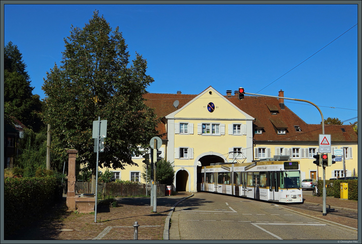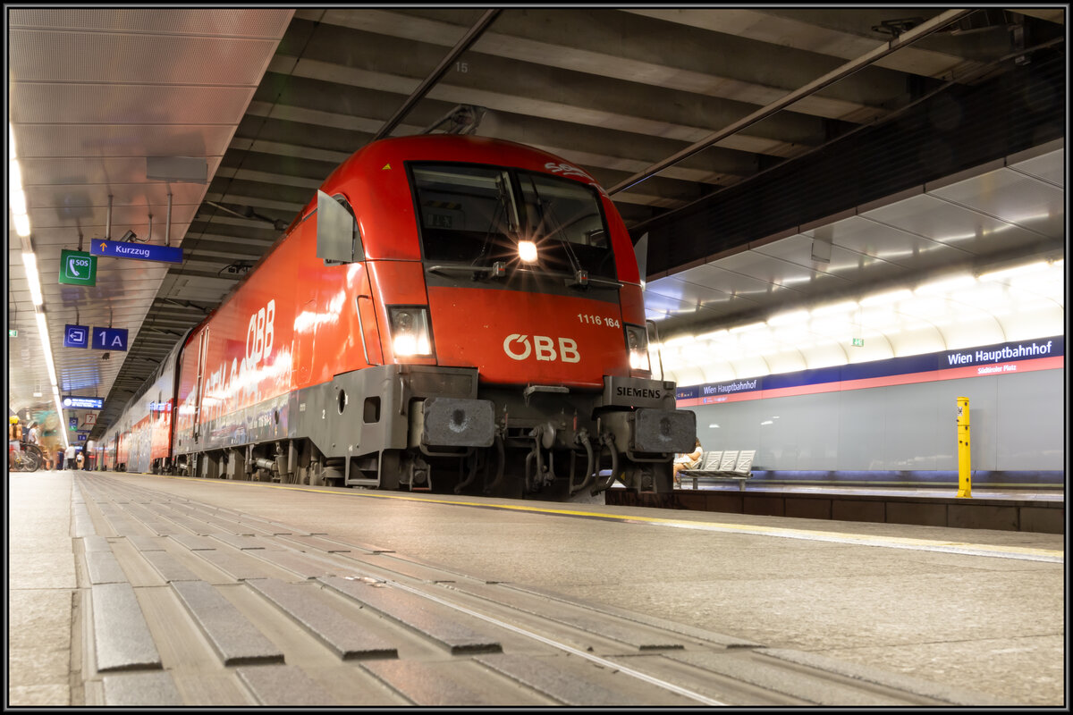 Anfang September 2023 blickte ich durch die Jalousie auf die Badnerbahn.