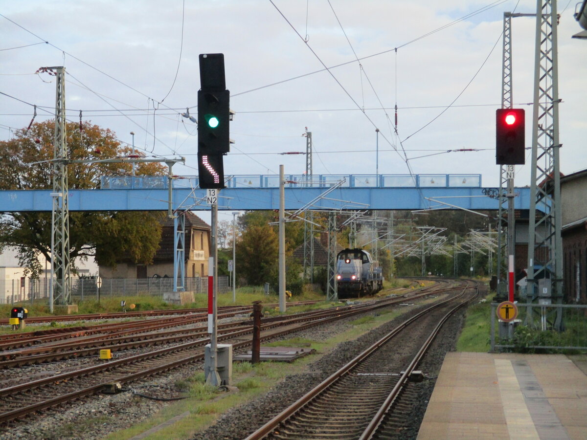 DeltaRail GmbH, Frankfurt (Oder) [D] mit ihrer in Luxemburg registrierten MaK G 1206 [NVR-Nummer: 92 82 0001 508-1 L-DELTA] am 11.10.23 Durchfahrt Bahnhof Frankfurt (Oder).