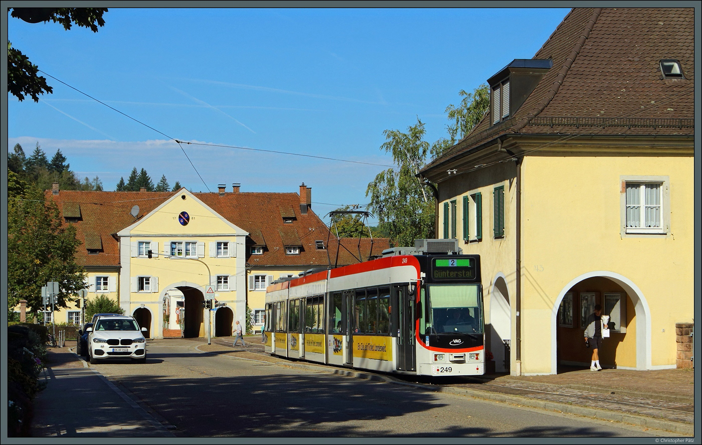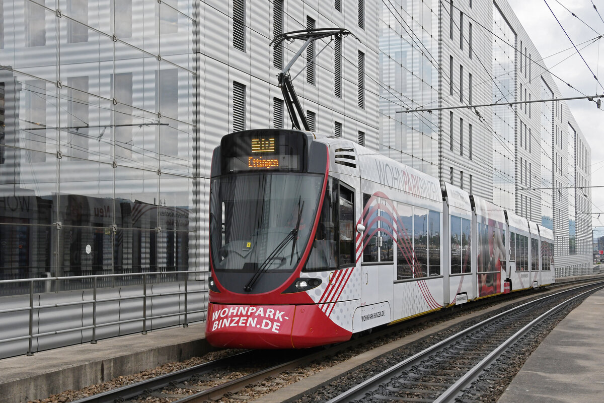 Das Design der Stadler Tango-Stadtbahnwagen - ... wirkt etwas eigenwillig. Der Grund liegt an den fast bis zur Dachkante hochgezogenen Seitenscheiben. Die Front zeigt eine deutliche Verwandtschaft zu den auf den Straßenbahnlinien eingesetzten Variobahnen, die ebenfalls bei Stadler gebaut wurden. Wagen 6245 B ist hier an der Haltestelle Hustadt zu sehen. 22.08.2023 (M)