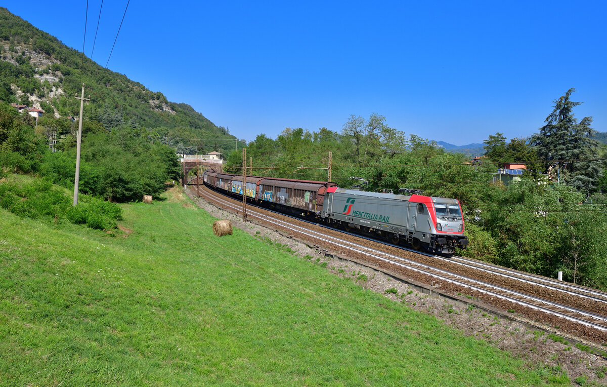 E 494 002 mit einem Güterzug am 08.09.2023 bei Rigoroso.