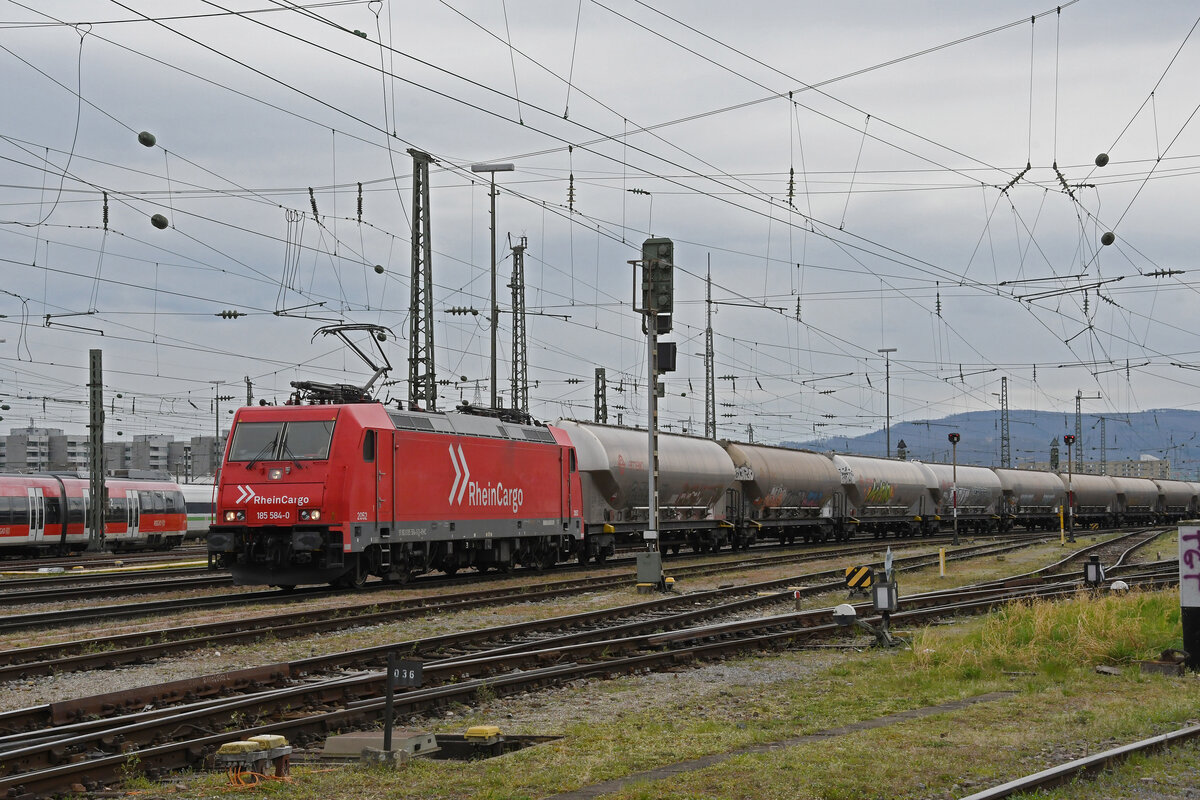 Lok 185 584-0 durchfährt am 23.03.2023 den badischen Bahnhof.