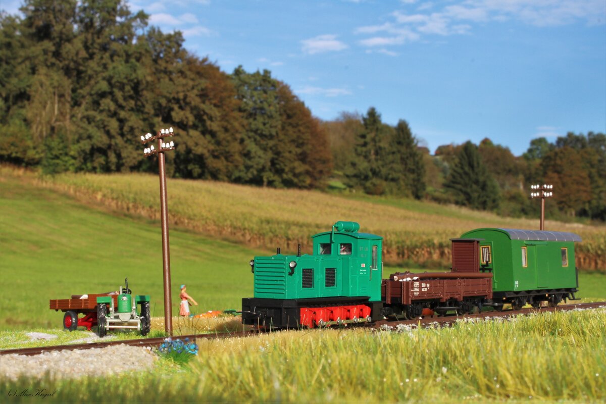 2016 910-9 "Erika" ist mit Rübenzug 59085 wieder auf Schiene, und wartet am Bhf. Ried mit 18Wagen auf die Abfahrt Richtung Zuckerfabrik; 231009