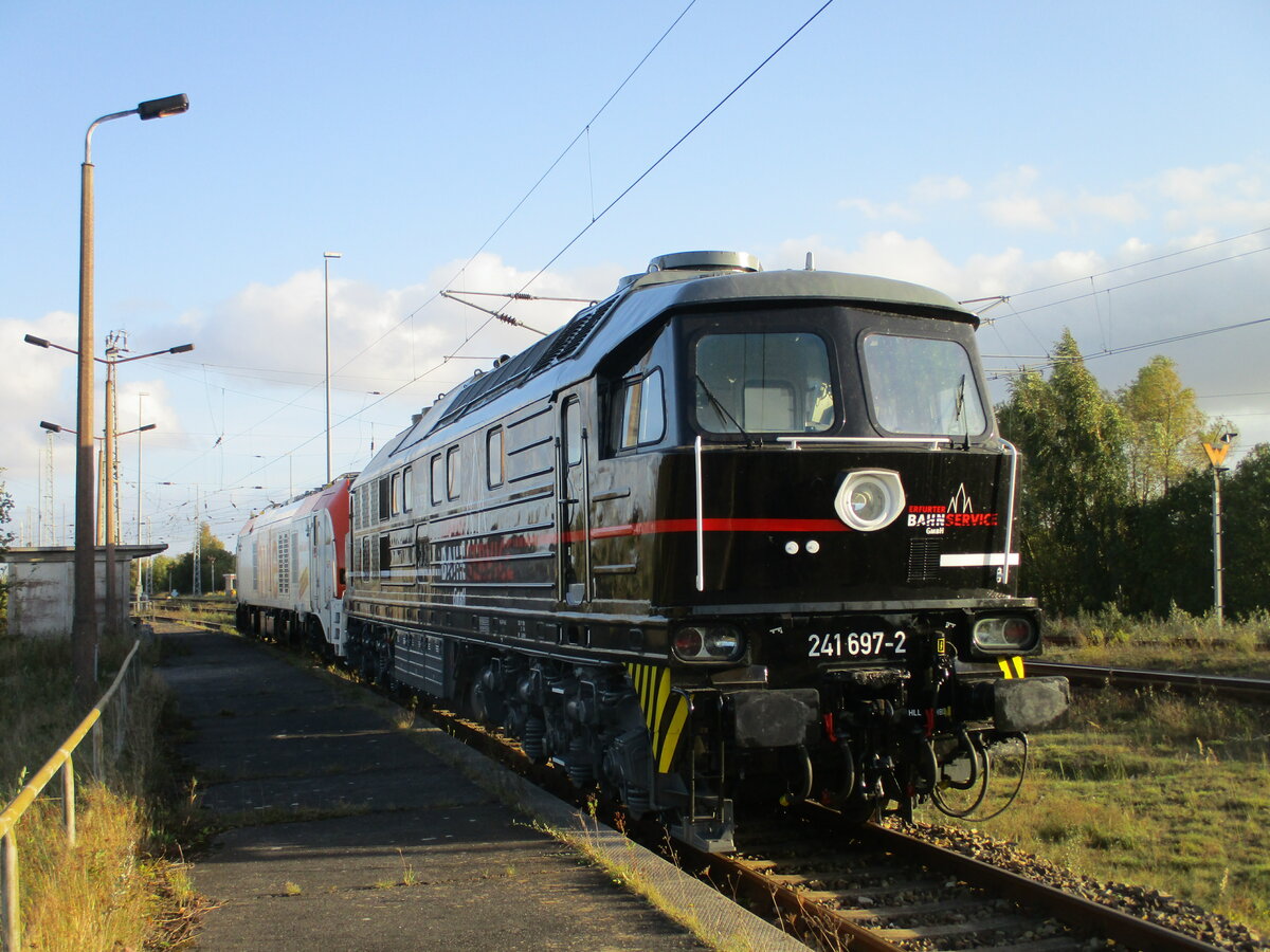 Salzland Rail Service 232 088-5 ( 9280 1232 088-5 D-SLRS ) mit einem DB Nothilfewagen in Gera am 10.10.2023