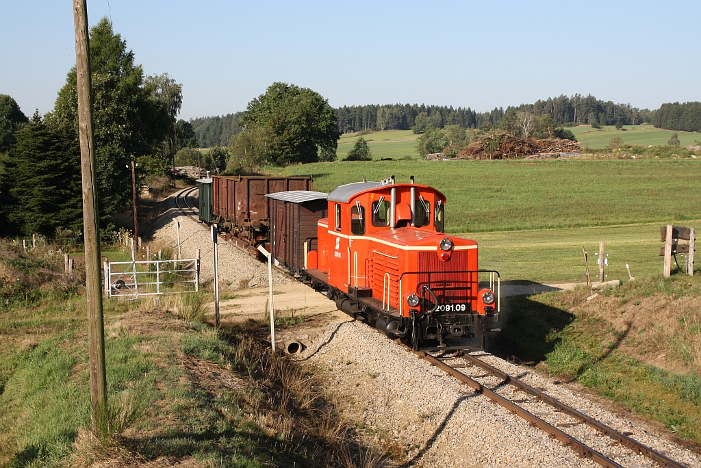 WSV 2091.09 anlässlich des vom WSV veranstalteten 2 tägigen  Güterzugfestival im Wald4tel  am 10.September 2023 beim Km 11,8 der Strecke Alt Nagelberg - Heidenreichstein.