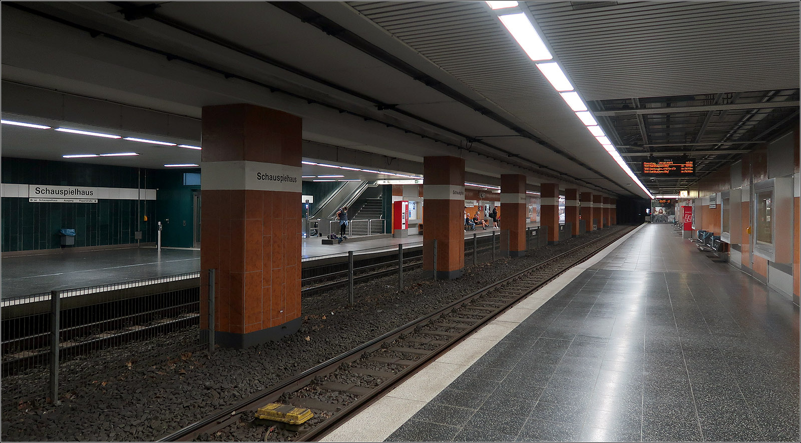 Die Haltestelle Schauspielhaus mit Seitenbahnsteigen wurde in offener Baustelle erstellt.