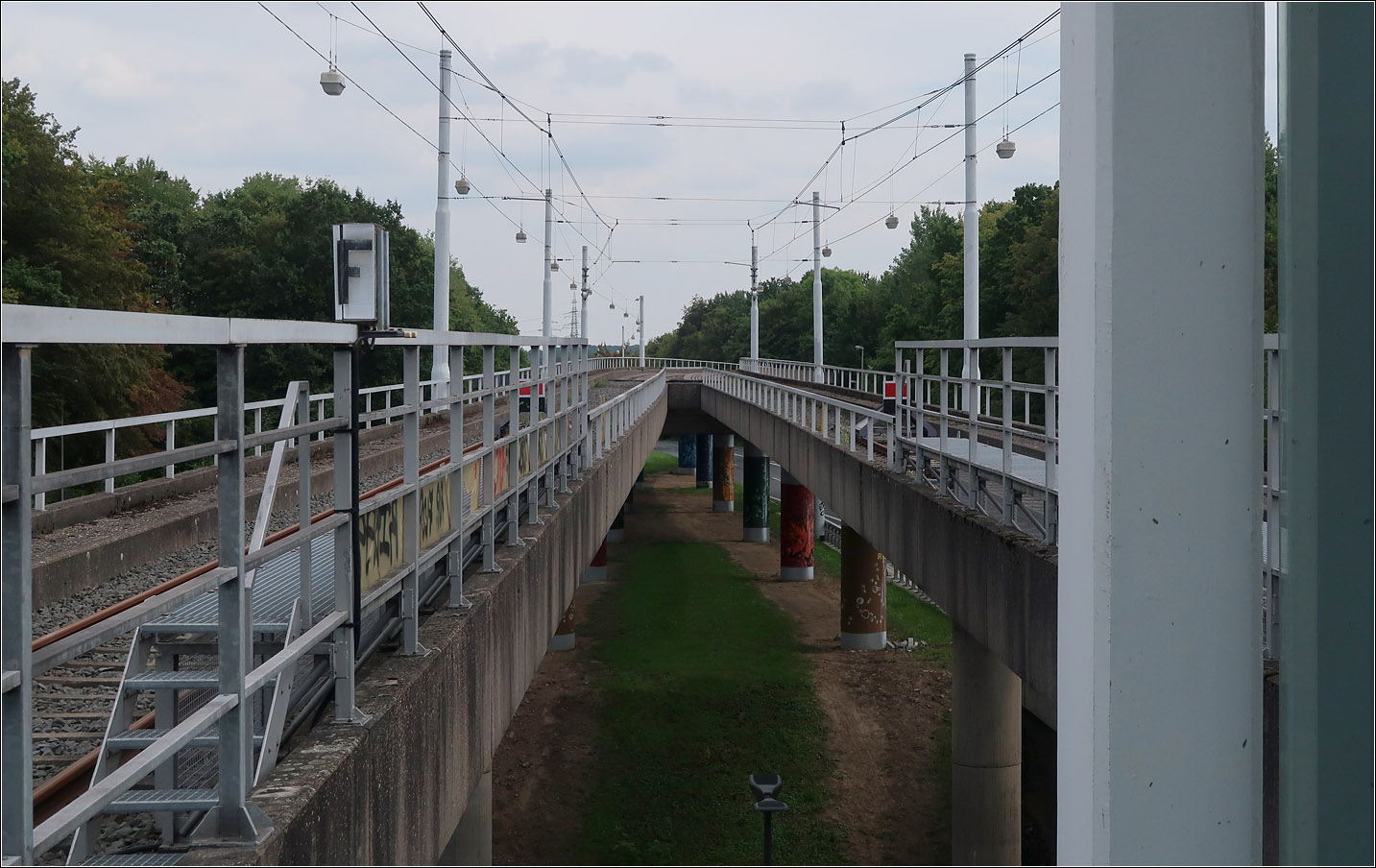 Für die Weiterführung der U35 über Heven nach Witten entstand im Anschluss an die Haltestelle Hustadt diese Brückenbauwerk, das die Stadtbahnstrecke über die südlichen Fahrspuren der Universitätsstraße hinweg geführt hätte.