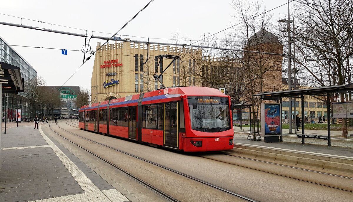 Chemnitz__Haltestelle 'Roter Turm' mit Variobahn 6NGT-LDZ[ABB Henschel/Adtranz] Nr.411.__01-03-2024