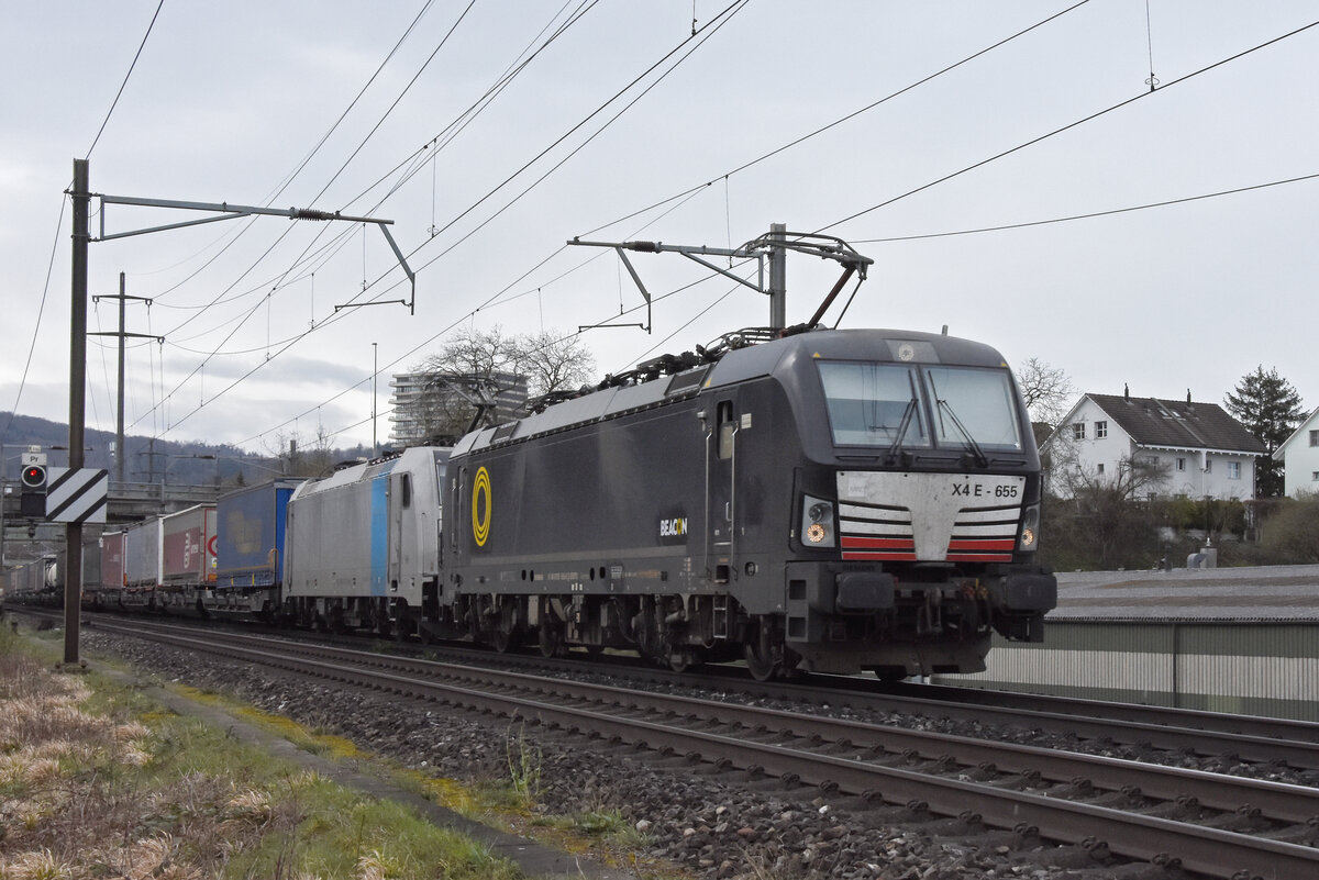 Doppeltraktion, mit den Loks 193 655-8 und 186 102-0 fährt am 11.03.2024 Richtung Station Salina Raurica.