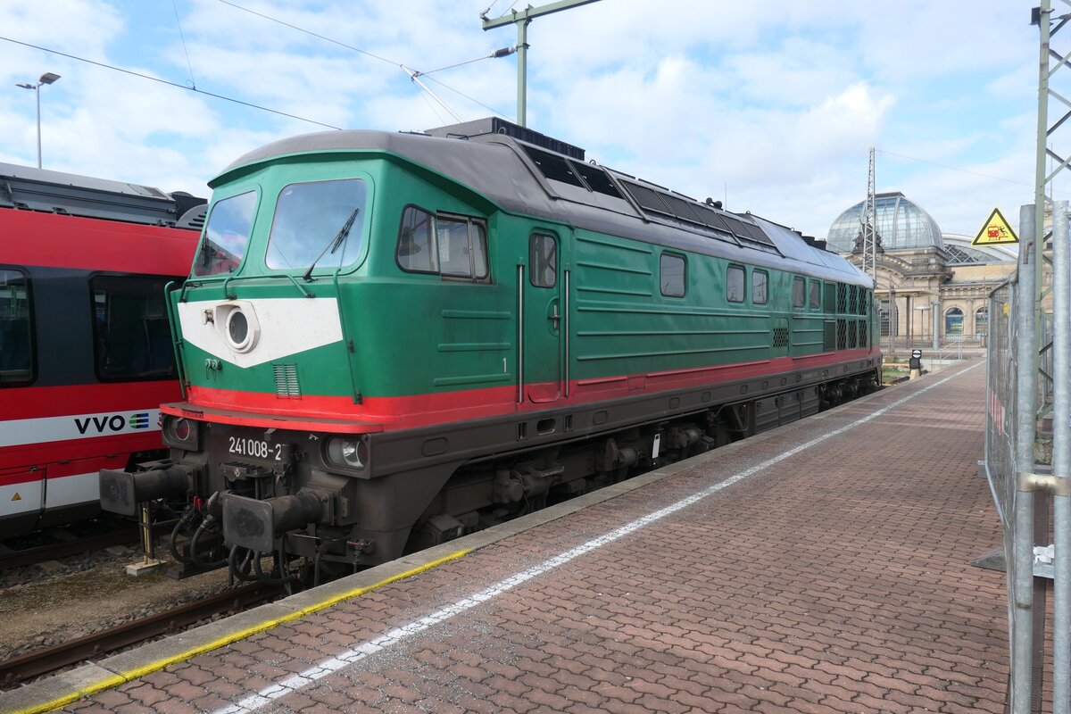 Ebenfalls im März 2024 stand die 241 008 im Bahnhof Dresden-Hauptbahnhof abgestellt.