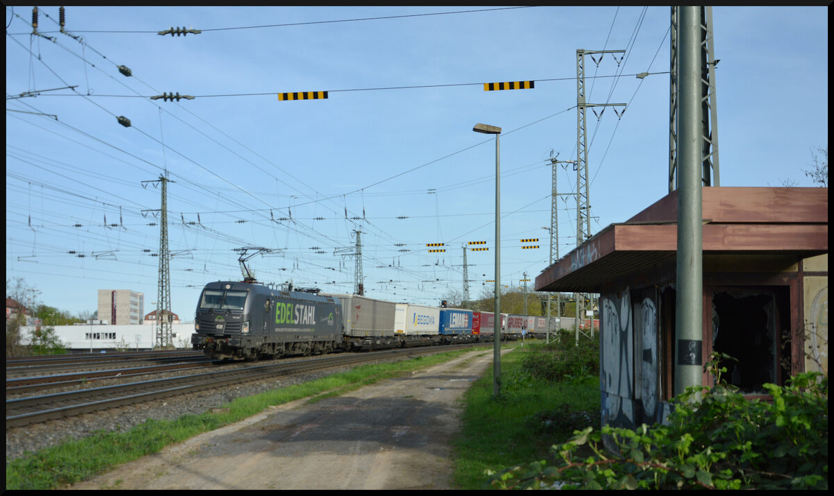 TXLogistik hatte zum Aufnahmezeitpunkt hohen Bedarf an Lokomotiven und daher von anderen privaten EVUs einige Vectrons angemietet. Neben Captain und BoxXpress half auch die LTE aus. Hierbei handelte es sich um die 193 299. Am 09. März 2024 konnte ich diese vor dem KLV-Zug DGS 40559 von Waalhaven Zuid nach Verona Q.E. bei Fahlenbach in der Hallertau fotografieren. Die 193 299 wirbt übrigens für eine in 2021 neu in Gramtsneusiedel errichtete Lokomotivwerkstätte. Diese ging aus einer Kooperation der LTE mit ELL und der ÖBB hervor, steht aber jedem EVU für Dienstleitungen offen.
