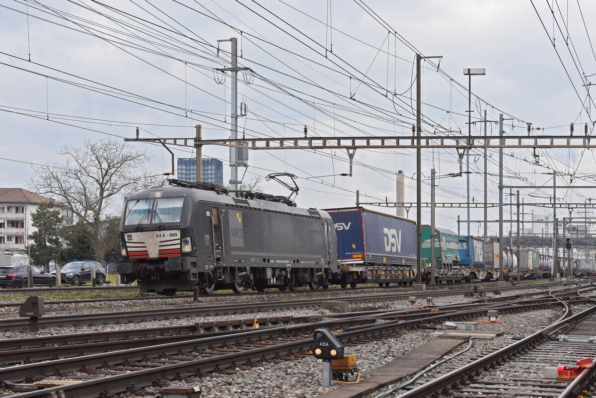 Siemens Vectron 193 660-8 durchfährt am 06.02.2024 den Bahnhof Pratteln.