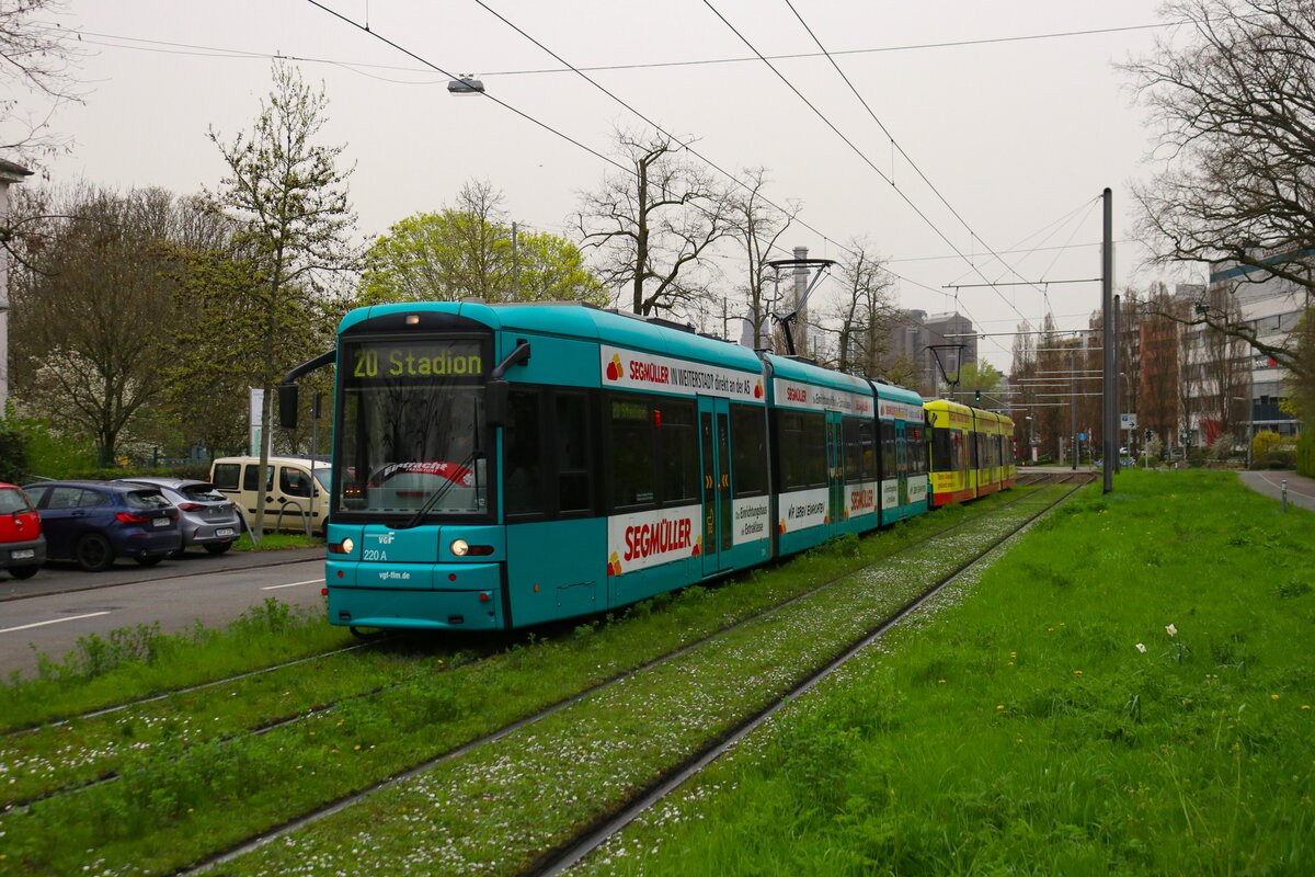 VGF Bombardier Flexity Classic S Wagen 220+2xx als Doppeltraktion am 30.03.24 in Frankfurt am Main