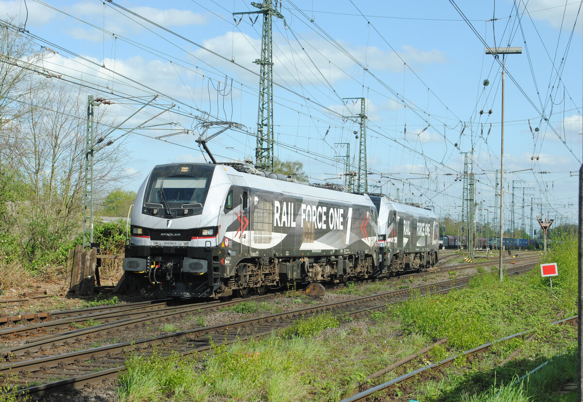 2019 302 und 2019 304 Rail Force One in Emmerich am 10.04.2024, als Lz-Fahrt richtung Rotterdam. Bild 23154.